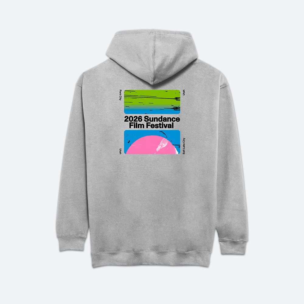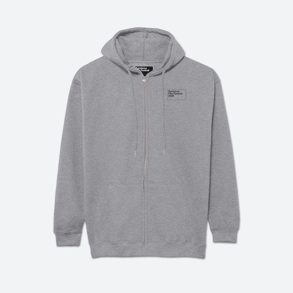 Cozy up in this zip hoodie with our signature "Sundance Film Festival 2026" logo on the chest and abstract sun and grainy film strip motif on the back. In a premium heather colorway, it features a jersey-lined hood with drawcords, brushed interior, and kangaroo pockets. Sizes: S–2XL Material: 65% cotton, 35% polyester