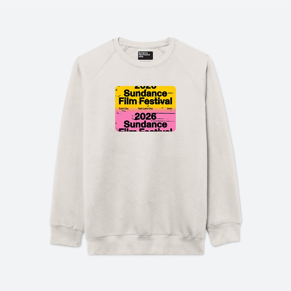Stay cozy and stylish in this oatmeal heather-hued crew sweatshirt with soft brushed interior and our abstract film strip motif in a pink-and-yellow gradient and “2026 Sundance Film Festival” on the chest. Sizes: S–3XL Material: 65% cotton, 35% polyester