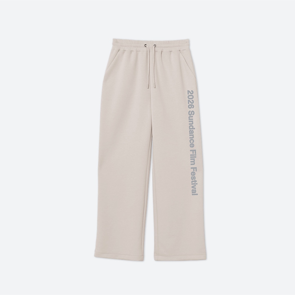 The relaxed-fit wide-leg pant in a mineral colorway features “2026 Sundance Film Festival” down the leg and comes in a wrinkle-resistant scuba knit with an elastic waistband, tonal drawcord, and slanted side pockets. Pair with our matching full zip jacket to complete the look. Sizes: S–XL Material: 76% polyester, 18% rayon, 6% spandex